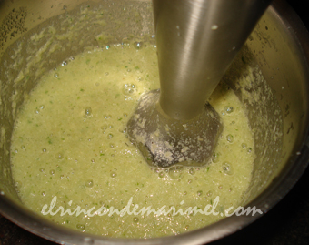 Primero elaboramos el caldo vegetal para mojar el risotto. Podemos poner agua a hervir agua con cebolla, hinojo y apio durante 25 minutos, o como hemos hecho nosotros utilizar las verduras deshidratadas de Trevijano (un producto muy interesante para tener siempre en la despensa). Ponemos al fuego una cazuela con un litro de agua, 4 grs. de sal y 4 cucharadas soperas de las verduras de sopa juliana de Trevijano (foto 1ª). Dejamos hervir a fuego medio 25 minutos. Colamos y mantenemos el caldo caliente.