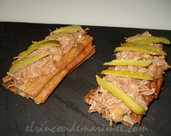Rellenamos cada porra una generosa cantidad de la carrillera desmigada.