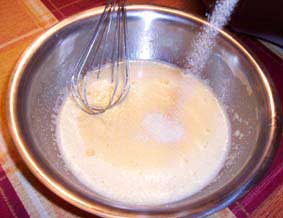 Batimos los huevos en un bol grande con la levadura. Una vez batidos,