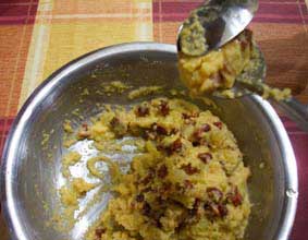 en cuadraditos pequeños. Trabajamos la masa con una cuchara de