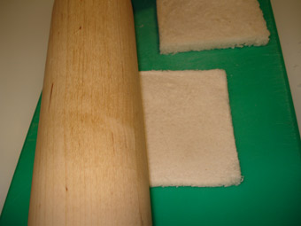 Con ayuda de un rodillo estiramos el pan Bimbo (nos quedará, más grande y