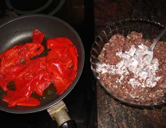 y los pintamos con huevo. Metemos al horno a 180º durante 8 - 10 min. hasta que se doren. Servimos acompañados de unas tiras de salsa (foto 3ª). Ponemos el resto de la salsa cerca para añadirnos más, pues seguro que nos gusta.