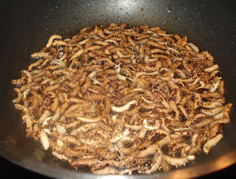 Para la segunda opción, en una sartén con abundante aceite bien caliente, ponemos el arroz salvaje a freír en tandas (cada vez, un puñado). En cuanto el último grano acabe de subir a la superficie (foto 3ª), retiramos del fuego , sacamos el arroz con una espumadera y lo extendemos en una fuente con papel absorbente, para quitarle el exceso de aceite y lo sazonamos.