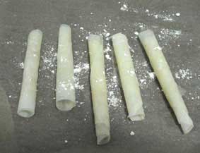 Enrollamos la pasta sobre si misma y horneamos unos minutos a 200º hasta que estén doradas.(foto 2ª)