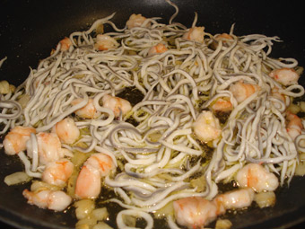 los dedos, para que se suelten) removemos durante 2 minutos (foto 2ª) y añadimos los espaguetis cocidos. Mezclamos unos