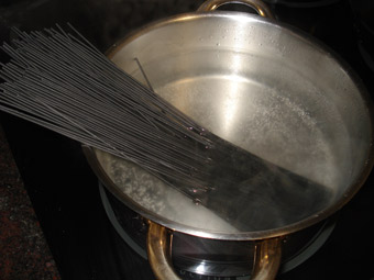 (a razón de 10 gr. de sal, por cada litro de agua). Cuando empiece a hervir, añadimos la pasta.