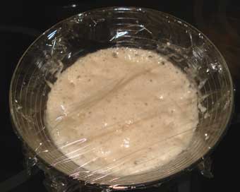 Tapamos el recipiente con un trapo y lo mantenemos en un lugar templado hasta que doble su volumen (unas dos horas).