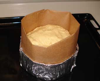 Como el panettone que he hecho, es pequeño, he tenido que fabricarme el molde inferior con uno de aluminio de los de usar y tirar. |