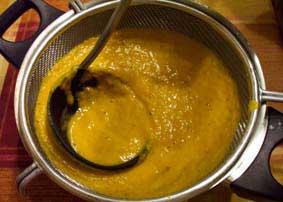 Trituramos todo y lo pasamos por un colador, ayudándonos de