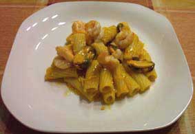 cuidado la salsa con los langostinos, para no romper la pasta.