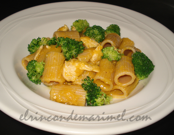 PASTA INTEGRAL CON POLLO, BROCOLÍ Y CREMA DE CALABAZA