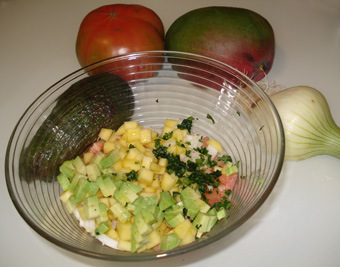 SALMÓN A LA PLANCHA CON PICO DE GALLO DE MANGO
