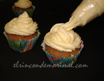 Para la crema de Mascarpone, batimos el queso con el azúcar, hasta integrarlo perfectamente. Metemos la crema en una manga pastelera con una boquilla rizada y la guardamos en la nevera hasta su utilización. |