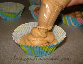 Llenamos dos tercios de los moldes con la masa (foto 4ª).